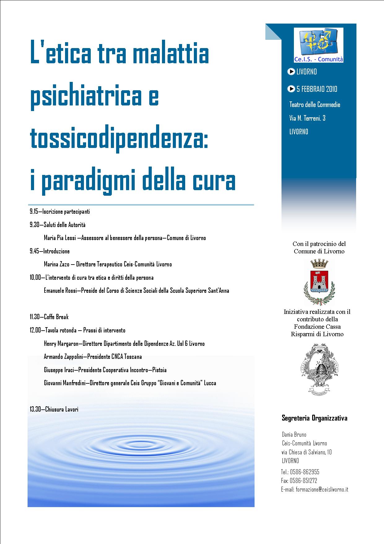 La Direzione terapeutica dell’Associazione Ceis-Comunità Livorno organizza il convegno “L’etica tra malattia psichiatrica e tossicodipendenza: i paradigmi della cura”.